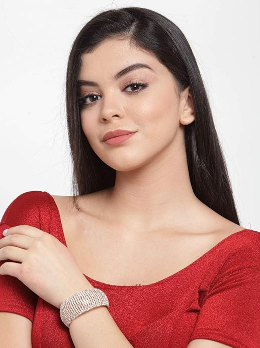 Be the first to review “Shining Diva Fashion 18k Rose Gold and Silver Plated Adjustable Crystal Cuff Bracelet for Women and Girls”