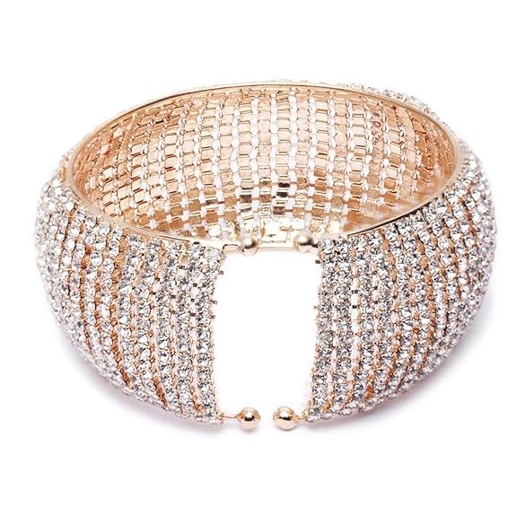 Shining Diva Fashion 18k Rose Gold and Silver Plated Adjustable Crystal Cuff Bracelet for Women and Girls